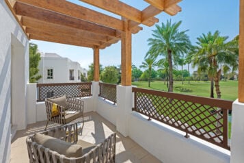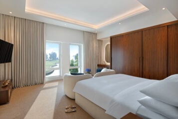 All villas overlook the golf course and feature 4 bedrooms, all with en-suite, private and temperature-controlled swimming pools, fully equipped kitchens, and dining and living areas.